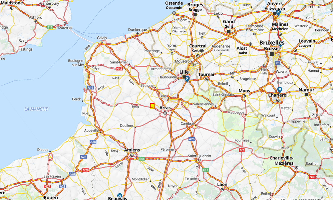 I don't know what battles Henry may have participated in, if any, previous to his death, but he died on April 28, 1916 from wounds received from incoming. His unit was in the area of Souchez, trenches Q89-92. He died in Casualty Clearing Station 30, in the area of Vimy Ridge in France, though that famous battle was fought a year later. The yellow box near Arras is the approximate location of where he was killed.